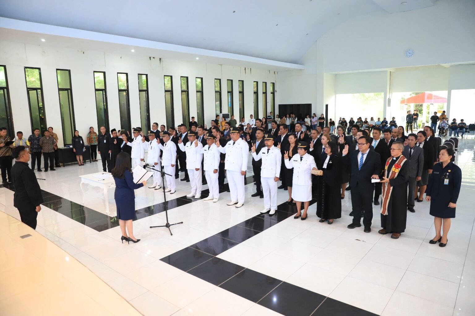 Sitaro.sulutnews.com – Pemerintah Kabupaten Kepulauan Siau Tagulandang Biaro (Sitaro) melaksanakan rotasi jabatan dalam skala besar sebagai bagian dari upaya memperkuat efektivitas birokrasi. Prosesi pelantikan dan pengambilan sumpah jabatan bagi para pejabat administrator dan pengawas berlangsung di Auditorium Kantor Bupati, disaksikan para pimpinan OPD serta jajaran asisten.