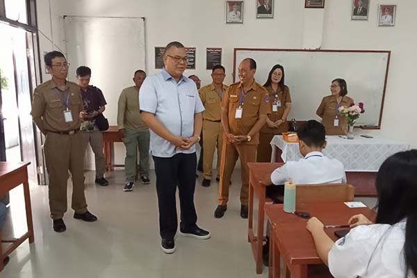 Foto : Foto - Louis Schramm SH.MH Wakil Ketua Komisi VI Bidang Kesra DPRD Sulut, saat meninjau Pelaksanaan Ujian di SMANSA Manado