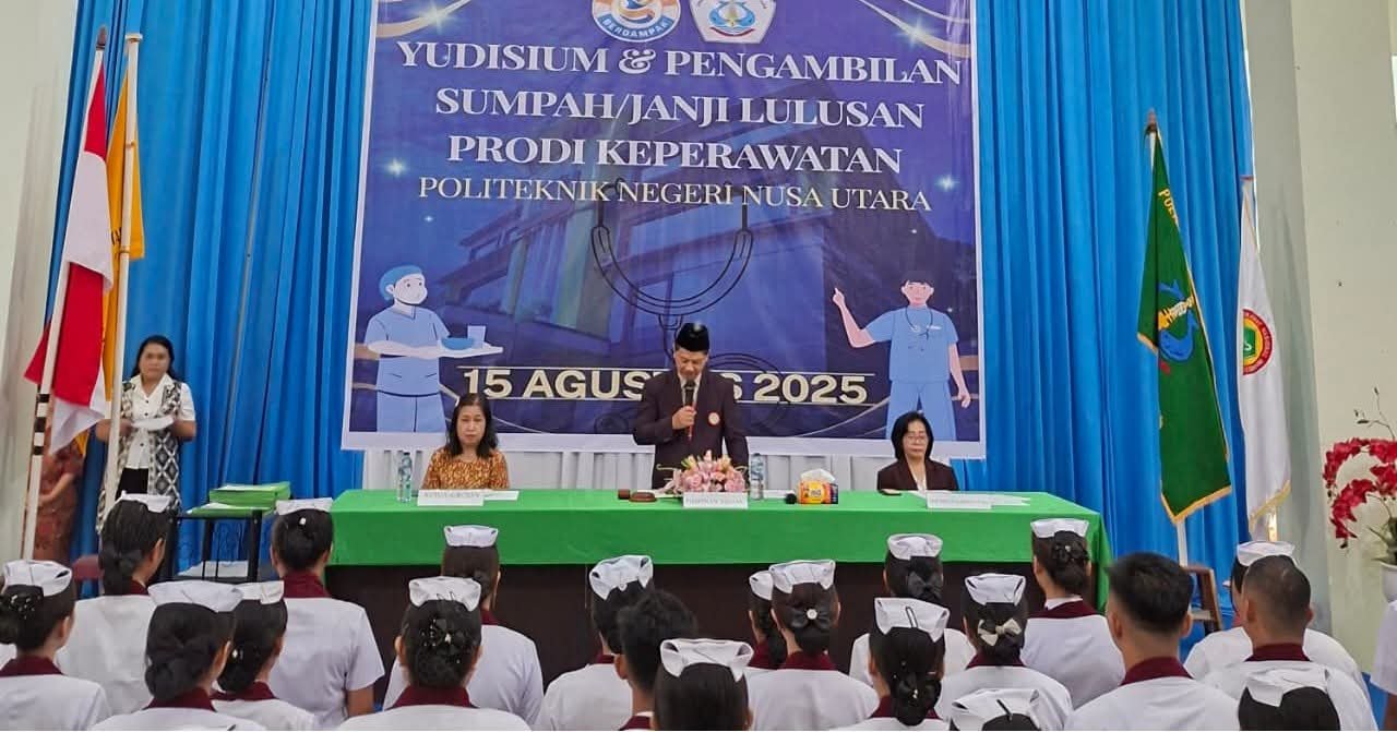 Tahuna, Sulutnews.com – Kampus Politeknik Negeri Nusa Utara (Polnustar) Program Studi Keperawatan melakukan yudisium kelulusan bagi 75 Mahasiswa semester akhir, di Auditorium J E Tatengkeng Kampus Polnustar Tahuna, Jumat (15/08/2025).