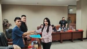 Foto : Angelia Regina Wenas saat menyerahkan Dokumen kepada Pimpinan Pansus