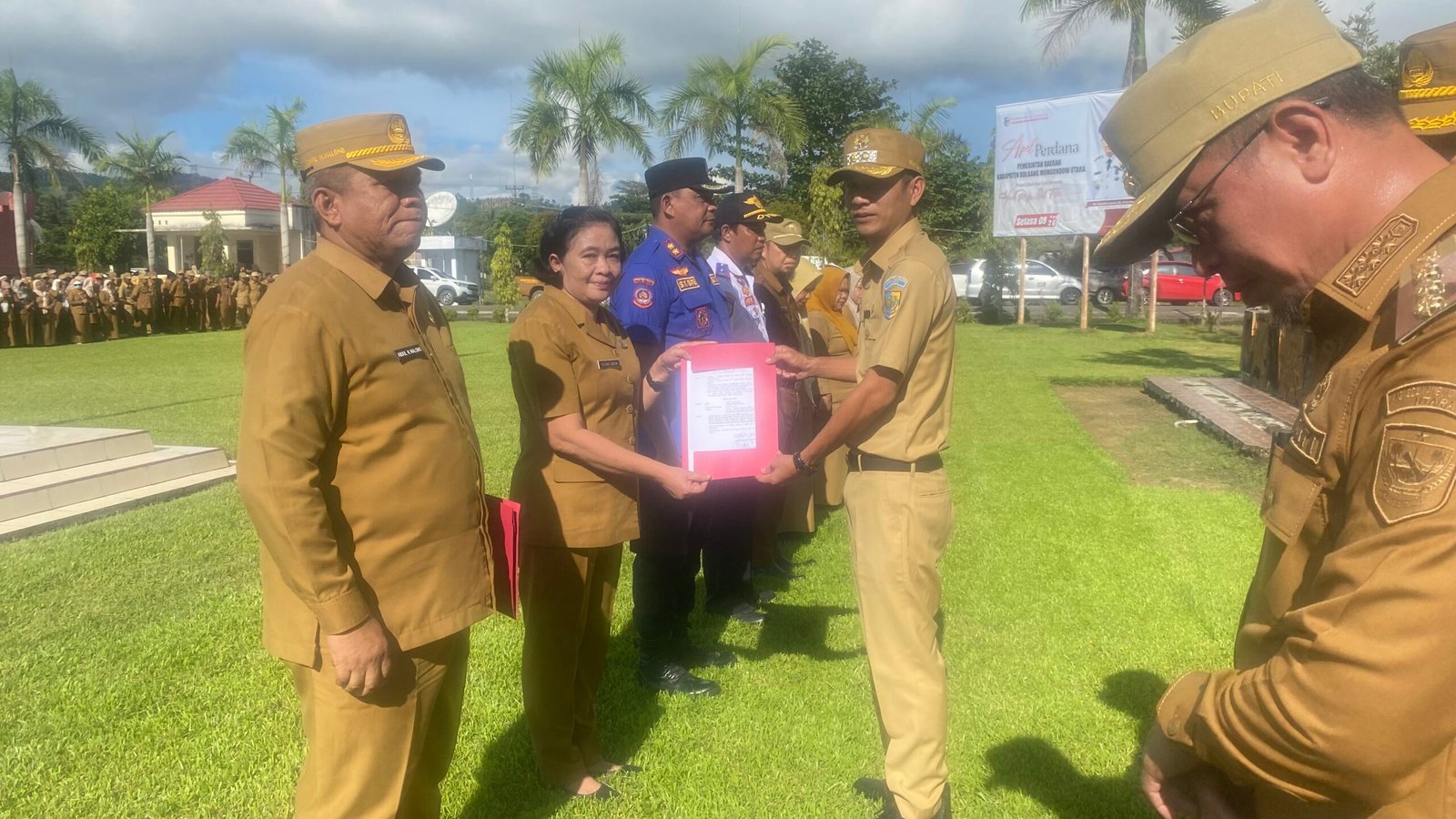 Dalam rangka penegakan disiplin Pegawai Negeri Sipil dan optimalisasi pelayanan publik. Saya perintahkan kepada Badan Kepegawaian dan Pengembangan Sumber Daya Manusia untuk segera membuat laporan kehadiran aparatur sipil negara pada apel perdana pada hari ini, dan terhadap PNS yang tidak hadir tanpa alasan yang sah harus dijatuhi sanksi hukuman disiplin sesuai Peraturan Pemerintah Nomor 94 Tahun 2021 tentang Disiplin PNS.