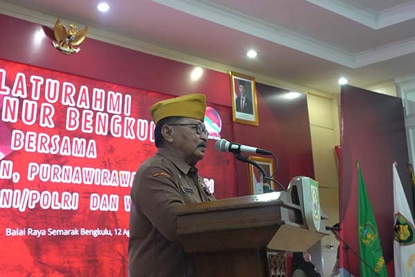 Hal ini disampaikan Gubernur Bengkulu, Helmi Hasan, didampingi Wakil Gubernur, Mian, saat bersilaturahmi bersama pejuang veteran, purnawirawan TNI/Polri, warakawuri TNI/Polri, serta wredatama, di Balai Raya Semarak, Selasa (12/8).