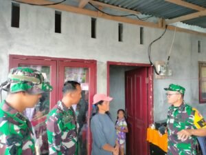 3. Kunjungan Kasi Ter Korem Mayor Inf, Vino Satria Onibala saat bercengkrama dengan masyarakat sekitar lokasi pembangunan RTLH.