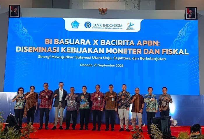 Manado, Sulutnews.com – Bank Indonesia (BI) Perwakilan Sulawesi Utara kerjasama dengan Kantor Wilayah (Kanwil) Dirjen Perbendaharaan (DJPB) dan Pemerintah Provinsi Sulawesi Utara, melaksanakan Kegiatan BI Basuara, Bacirita Anggaran Pendapatan dan Belanja Negara (APBN) dan Kebijakan Moneter dan Fiskal, Kamis, 25 September 2025.