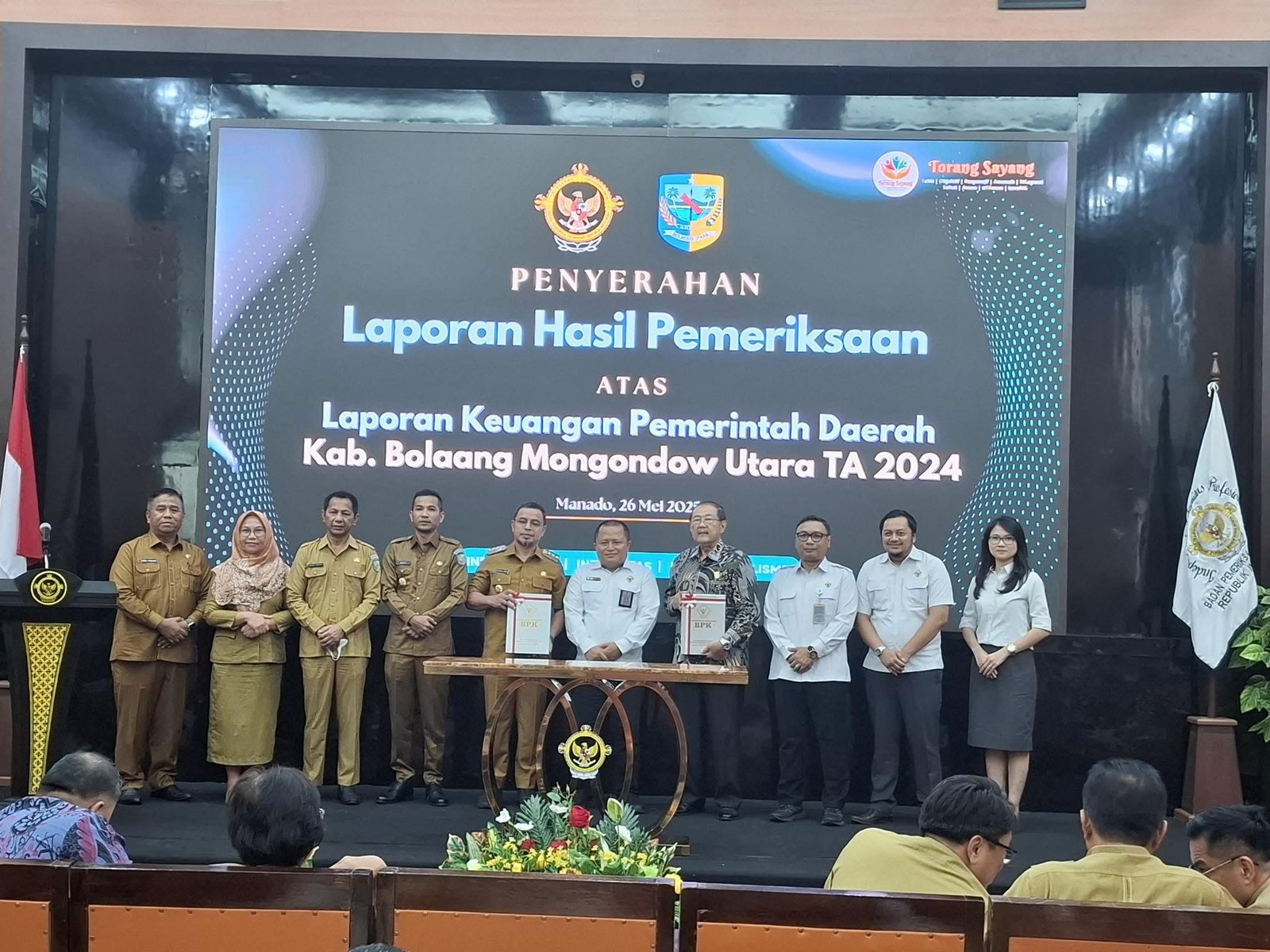 Manado, Sulutnews.com – Badan Pemeriksa Keuangan (BPK) RI Perwakilan Sulawesi Utara memberikan opini Wajar Tanpa Pengecualian (WTP) atas laporan keuangan pemerintah Kabupaten Bolaang Mongondow Utara Provinsi Sulawesi Utara (Sulut) tahun tahun 2024. Ini merupakan kali Ke-9 Pemkab Bolmong Utara meraih opini Wajar Tanpa Pengecualian (WTP) secara berturut-turut. Senin (26/05/2025).
