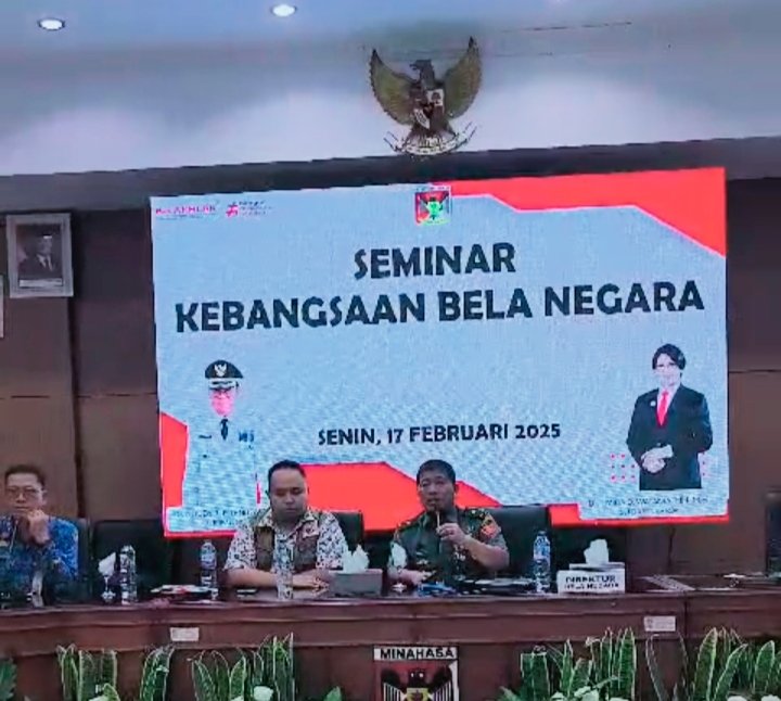 ” Gerakan Bela Negara harus terus digelorakan, mengingat kita saat ini sementara berada diera teknologi yang jika tidak siap maka bisa saja akan tergerus oleh berbagai perilaku yang bisa mengkhianati patriotisme perjuangan yang diwariskan oleh para founding father kita.” ungkap Brigjen TNI Sunarto saat menjadi narasumber pada seminar Kebangsaan Bela Negara di kantor Bupati Minahasa. Senin (17)2/2025)