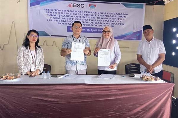 Boltim, Sulutnews – Bank SulutGo (BSG) Cabang Tutuyan Kabupaten Bolaang Mongondow Timur (Boltim), menggelar penandatanganan perjanjian kerja sama sekaligus sosialisasi transaksi non tunai Kas Daerah Online BSG untuk dana kapitasi Puskesmas, bertempat di Cafe Yayayong Kotabunan pada Kamis 15 April 2026.
