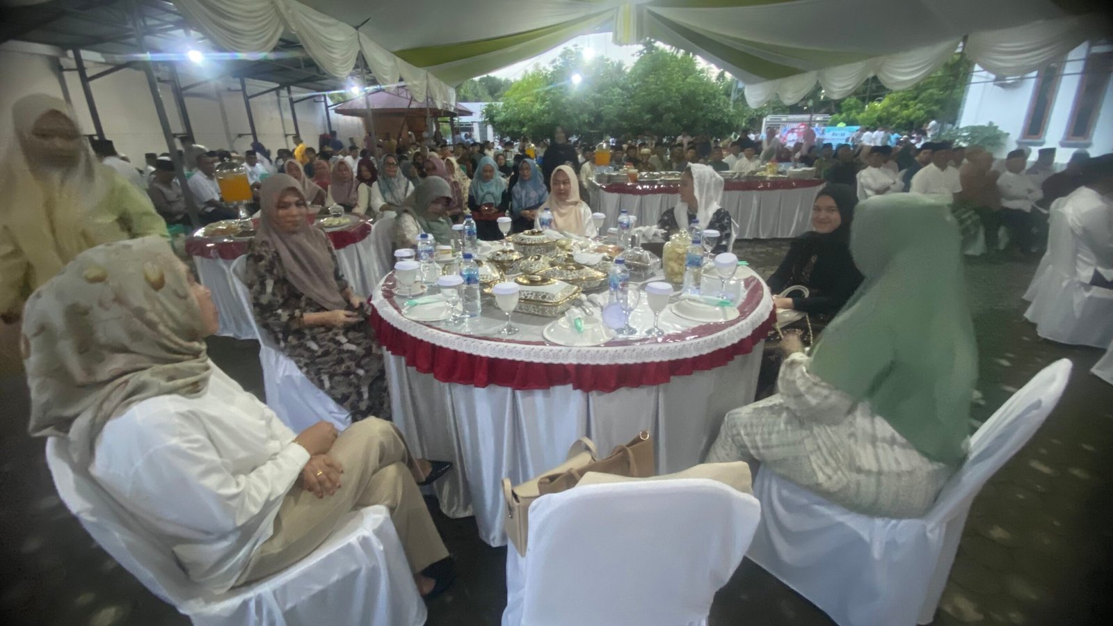 Terdengan suara riuh saling sahut menyahut tertawa gembira dalam ajang silaturahmi buka puasa bersama.