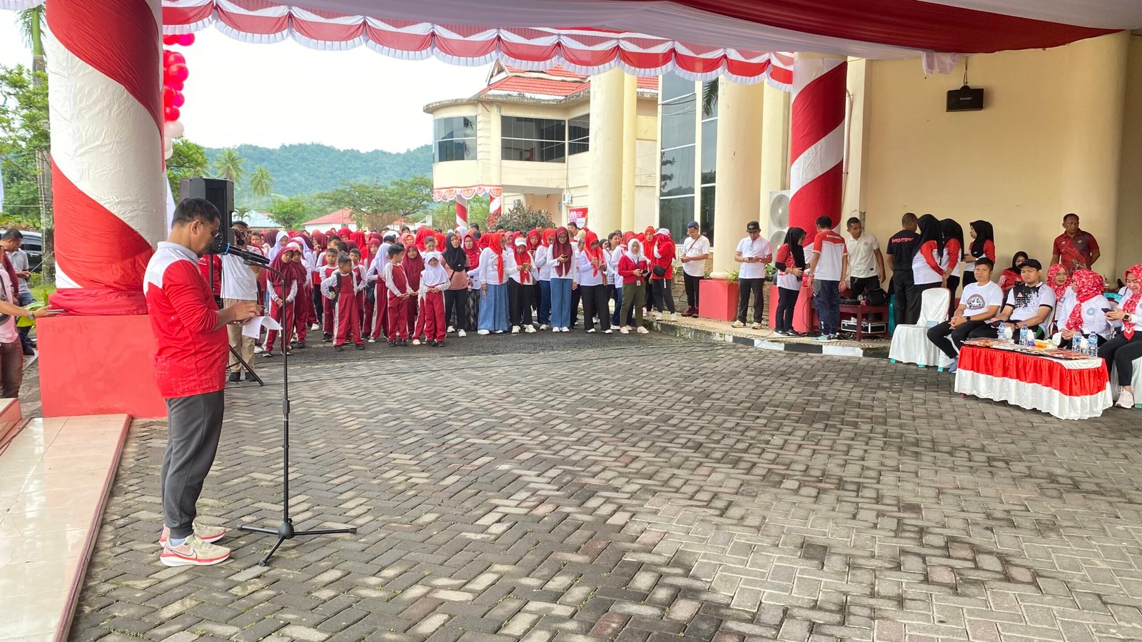Dalam acara sambutan ini, bupati mengundang dua pelajar maju kedepan untuk mengucapkan naskah proklamasi, jika diucap dengan benar dan fasih akan diberi hadiah dari Kadis Dikbud Fadly Tadjudin Usup, S.E, M.M.