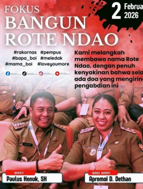 Sulutnews.com – Pemerintah Kabupaten Rote Ndao di bawah kepemimpinan Bupati Paulus Henuk, SH dan Wakil Bupati Apremoi Dudelusy Dethan menghadiri Rapat Koordinasi Nasional (Rakornas) Pemerintah Pusat dan Daerah Tahun 2026, yang diselenggarakan pada hari Senin, tanggal 2 Februari 2026, di Sentul International Convention Center Kurbuk SICC Kurtup Sentul.