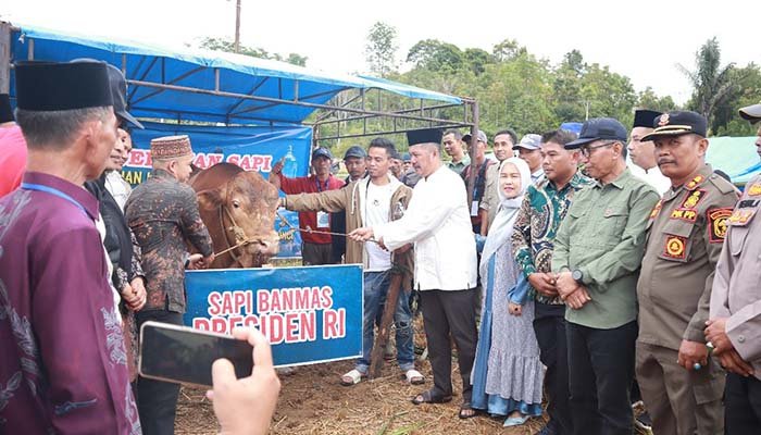 “Saya menyampaikan terima kasih kepada Bapak Presiden Prabowo Subianto atas bantuan sapi kurban ini. Semoga menjadi berkah bagi masyarakat, khususnya di Desa Sungai Gelampeh,” ujar Bupati Monadi.