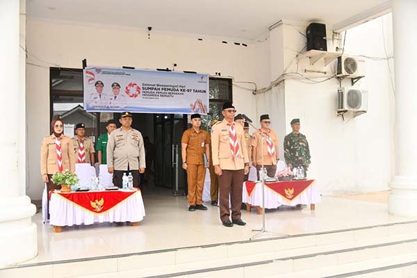 Pada upacara tersebut, Bupati Oskar Manoppo, membacakan pidato Menteri Pemuda dan Olahraga Erick Thohir, berempat di halaman Kantor Bupati, Selasa 28 Oktober 2025.