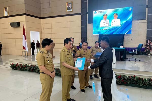 Selain menghadiri kegiatan pernikahan massal, Bupati Kepulauan Sangihe juga menerima penghargaan dari Pemerintah Provinsi Sulawesi Utara atas prestasi gemilang Dinas Kependudukan dan Pencatatan Sipil (Disdukcapil) Kabupaten Kepulauan Sangihe.
