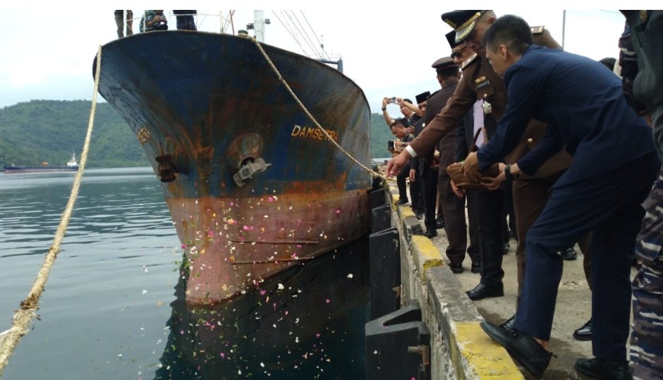 Dengan penuh penghormatan, Bupati Yusra bersama unsur Forkopimda dan jajaran Pemerintah Kabupaten Bolmong menaburkan bunga ke laut, sebagai simbol penghargaan atas pengorbanan dan semangat juang para pahlawan.