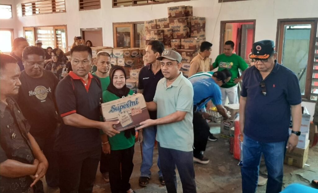 BOLMONG — Bupati Bolaang Mongondow Yusra Alhabsyi secara resmi menyerahkan bantuan pangan Cadangan Pangan Pemerintah Daerah (CPPD) kepada masyarakat terdampak Banjir bandang. Berlangsung di Kantor Kecamatan Poigar, Sabtu 8 November 2025.