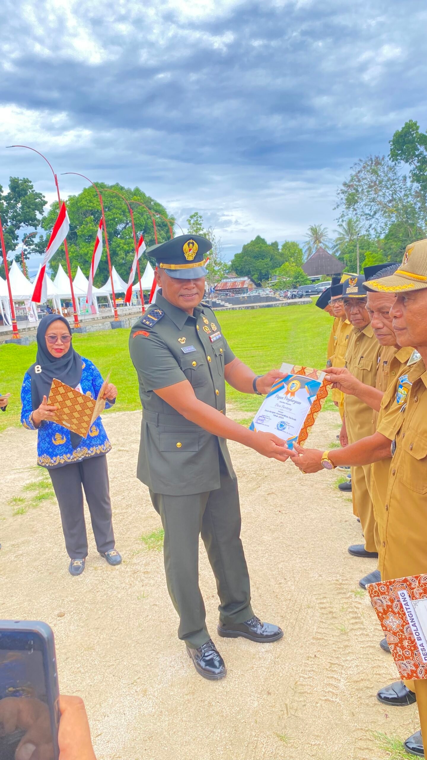 Dalam upacara yang dirangkaikan dengan peringatan Hari Anti Korupsi Sedunia (HAKORDIA) tersebut Bupati Bolmong Utara menyerahkan Piagam Penghargaan Desa dengan Akuntabilitas Terbaik Tahun 2025.
