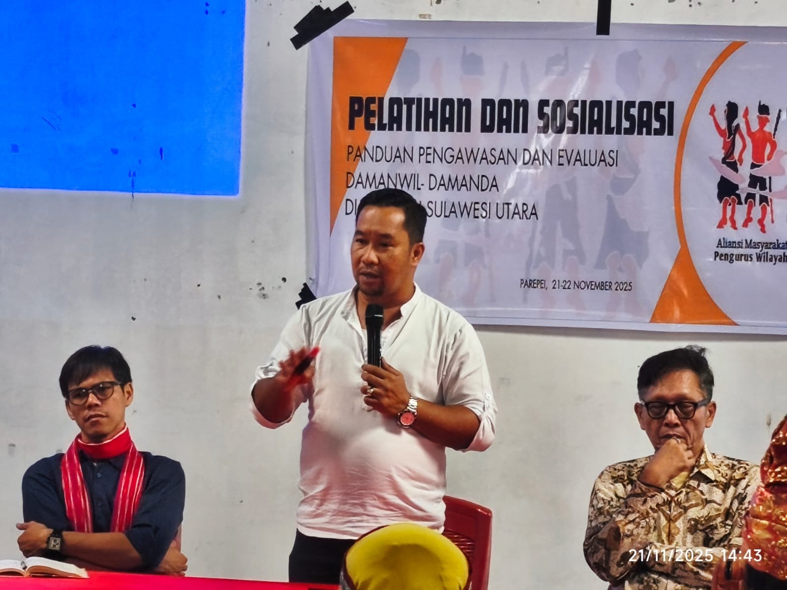 Acara ini dihadiri Damanda (Dewan Aliansi Masyarakat Adat Nusantara Daerah) dari Kaidipang, Bintauna, Sanger, dan PD AMAN Bombana Sulawesi Tenggara dalam rangka Pelatihan dan Sosialisasi Panduan Pengawasan dan Evaluasi AMAN, berlangsung di Balai Desa Parepei Kec. Remboken Kab. Minahasa, Prov. Sulawesi Utara. Jumat (21/11/2025).