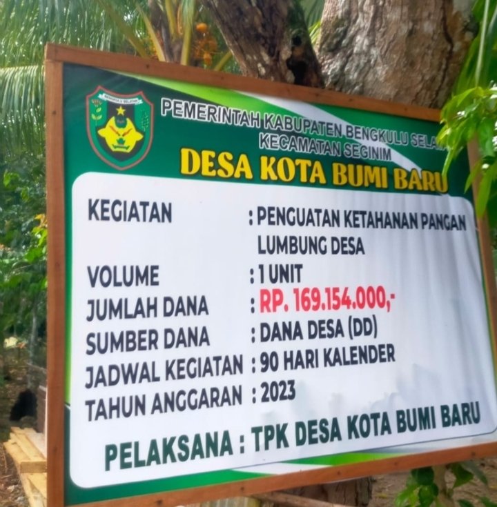 Dugaan fiktif ini dinilai akibat lumbung pangan yang dimaksud tidak ditemukan di desa Kotabumi baru kecamatan Seginim, bangunan yang di bangun tahun 2023 yang lalu hingga saat ini semenjak selesai di bangun masih digunakan untuk gedung paud. Sementara dana yang di realisasikan saat itu dana ketahanan pangan untuk penguatan ketahanan pangan lumbung desa senilai RP.169.154.000.