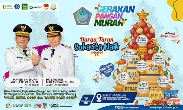 Kepala Dinas Pangan Sulut Dr Franky Tintingon S.STP. M.Si kepada wartawan Sulutnews.com Selasa (18/11) mengatakan, GPM yang mereka lakukan tujuannya dalam rangka stabilisasi pasokan dan harga pangan untuk pengendalian inflasi menjelang hari Natal dan Tahun Baru 2026.
