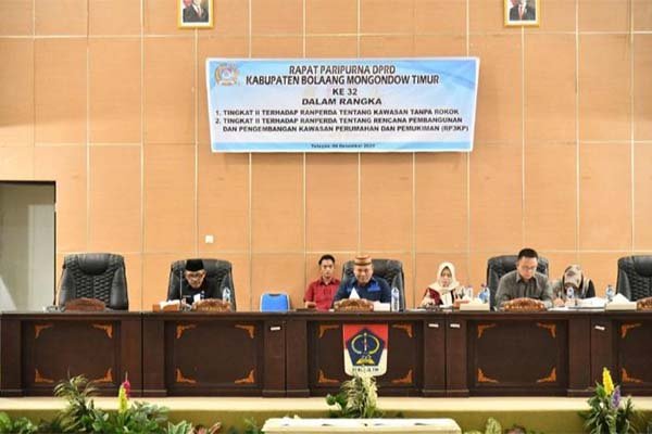 Boltim, Sulutnews.com – Dewan Perwakilan Rakyat Daerah (DPRD) Kabupaten Bolaang Mongondow Timur (Boltim), gelar Rapat Paripurna, penetapan dua Rancangan Peraturan Daerah (Ranperda). Yakni, Perda tentang Kawasan Tanpa Rokok (KTR), dan Perda tentang Rencana Pembangunan dan Pengembangan Perumahan dan Kawasan Permukiman (RP3KP).