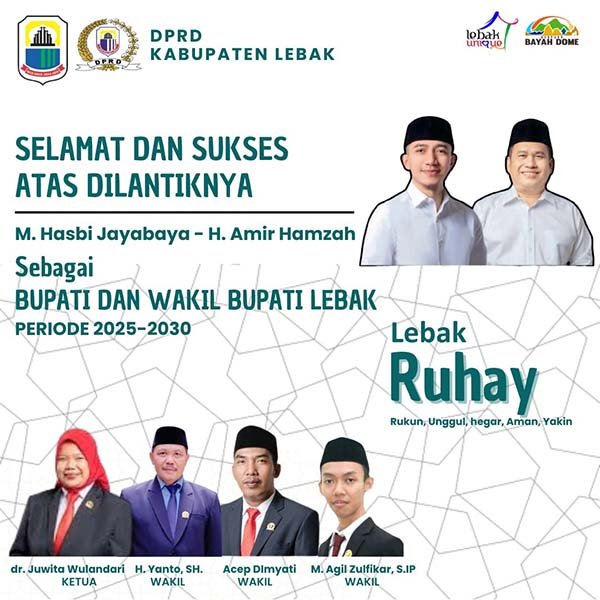 DPRD Kabupaten Lebak Ucapkan Selamat dan Sukses atas Pelantikan Bupati dan Wakil Bupati