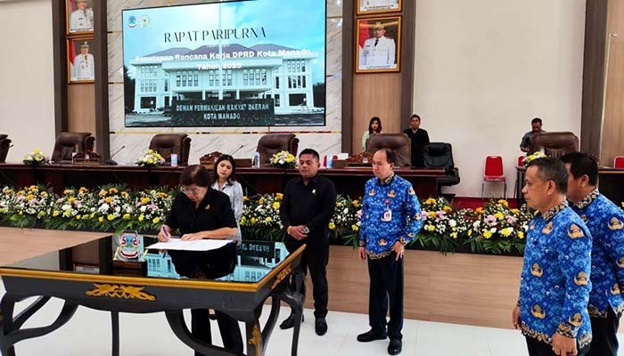 Selanjutnya, rapat paripurna dilanjutkan dengan penandatanganan surat keputusan dan berita acara atas rencana kerja DPRD Kota Manado tahun 2025.