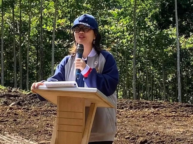 Foto – Wamendiktisaintek Prof Stelah Christy P.hd. Saat Meninjau Lokasi Pembangunan SMA Ungulan Garuda di Langowa Minahasa Jumat 14 Maret