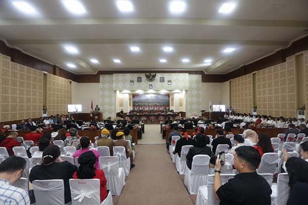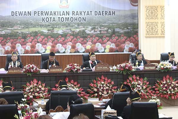 Rapat paripurna dipimpin oleh Ketua DPRD Kota Tomohon Ferdinand Mono Turang S.Sos didampingi Wakil Ketua DPRD Kota Tomohon Jeffri Polii dan Donald Pondaag.