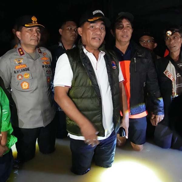 Foto – Gubernur Yulius Selvanus dan Kapolda Sulut Irjen Pol Roycke H Langie Tinjau Lokasi Banjir Jumat 21 Maret malam hari di Kota Manado