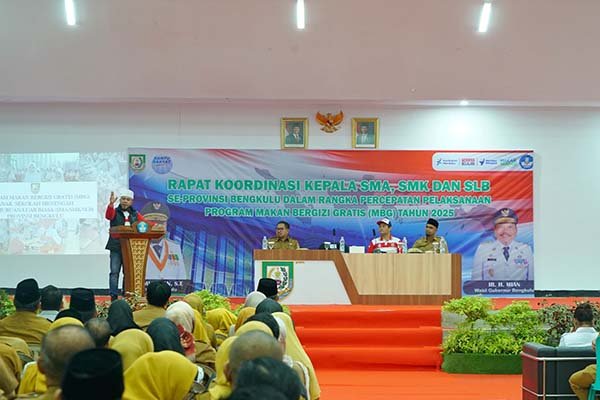 Bengkulu,Sulutnews.com – Gubernur Helmi Hasan, menegaskan pentingnya keterlibatan seluruh sekolah dalam menyukseskan program prioritas nasional Makan Bergizi Gratis (MBG) yang digagas Presiden Republik Indonesia, Prabowo Subianto.