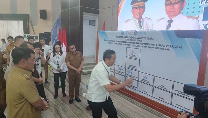 Dalam acara tersebut Gubernur dan Wagub Dr Viktor Mailangkay dan 14 pejabat terkait langsung menyatukan langkah melalui penandatanganan komitmen bersama pelaksanaan Sistem Penerimaan Murid Baru (SPMB) Tahun Ajaran 2025/2026 yang trasparan dan berkeadilan. Dari Kejaksaan dan Kepolisian serta Ombusmen Sulut serta BPMP dan BGTK dan jajaran Dikda melakukan penandatangan serta BKD Sulut.