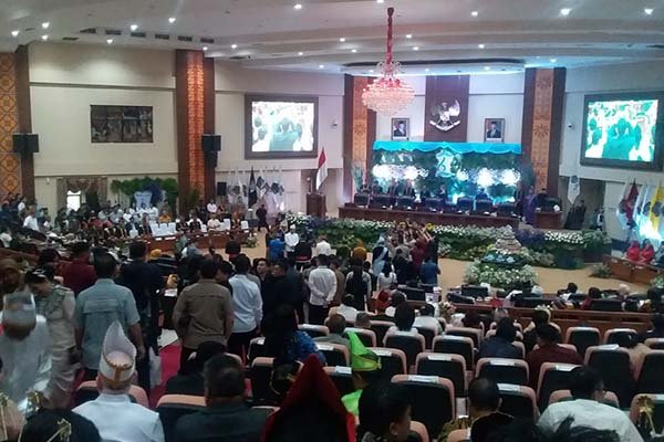 Gubernur Mayjen (Purn) Yulius Selvanus,SE membacakan dua pantun sekaligus itu dengan penuh semangat, selanjutnya disambut dengan tepuk tangan riuh oleh para Anggota DPRD yang menghadiri sidang paripurna tersebut.