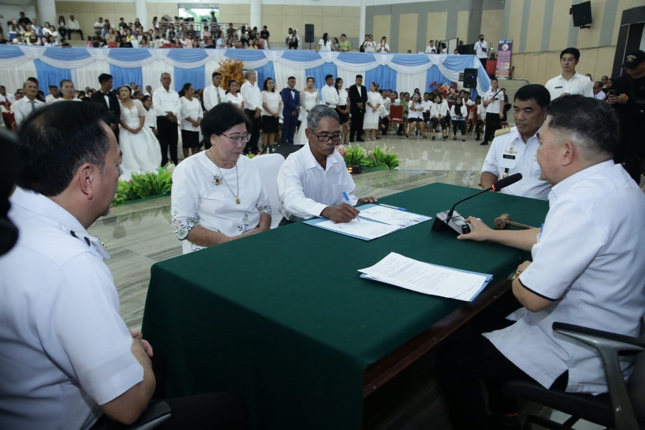 Gubernur Sulawesi Utara Mayjen. TNI. (Purn.) Yulius Selvanus, S.E. menjadi Saksi Pernikahan pada pencatatan Perkawinan Masal 124 pasangan