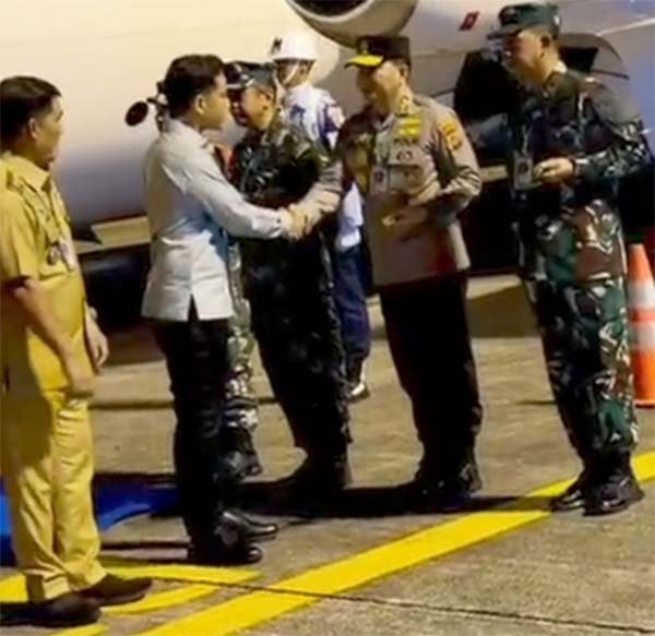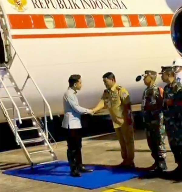 Gibran menggunakan kemeja putih dan sweter abu-abu muda dengan celana panjang warna gelap. Ia disambut Gubernur Sulut Mayjen TNI (Purn) Yulius Selvanus bersama Jajaran Forkopimda. Wapres Gibran kemudian memberi salam kepada Gubernur Sulut, Yulius Selvanus, S.E dan selanjutkan kepada Forkopimda.