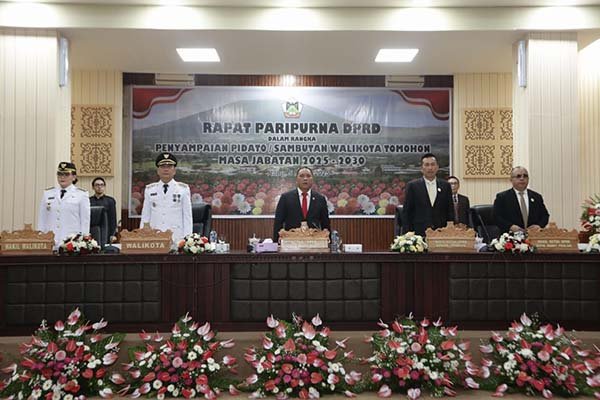 Mengawali pidato Walikota Caroll Senduk mengajak semua hadirin untuk memanjatkan puji dan syukur kehadirat Tuhan yang maha kuasa, atas kasih, berkat dan rahmatNya sehingga pada hari ini diberi waktu dan kesempatan untuk berada di ruang sidang DPRD Kota Tomohon dalam keadaan yang sehat dan diberkati.