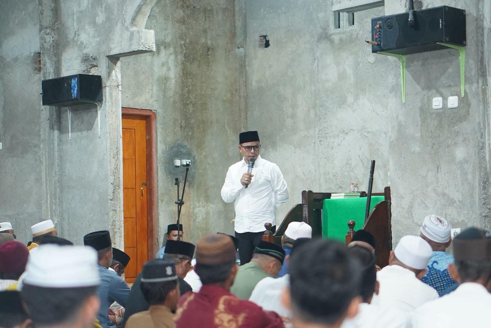 Bupati Bolmong Utara Sirajudin Lasena memberikan sambutan acara safari ramadhan 1447 H dengan masyarakat Bintauna