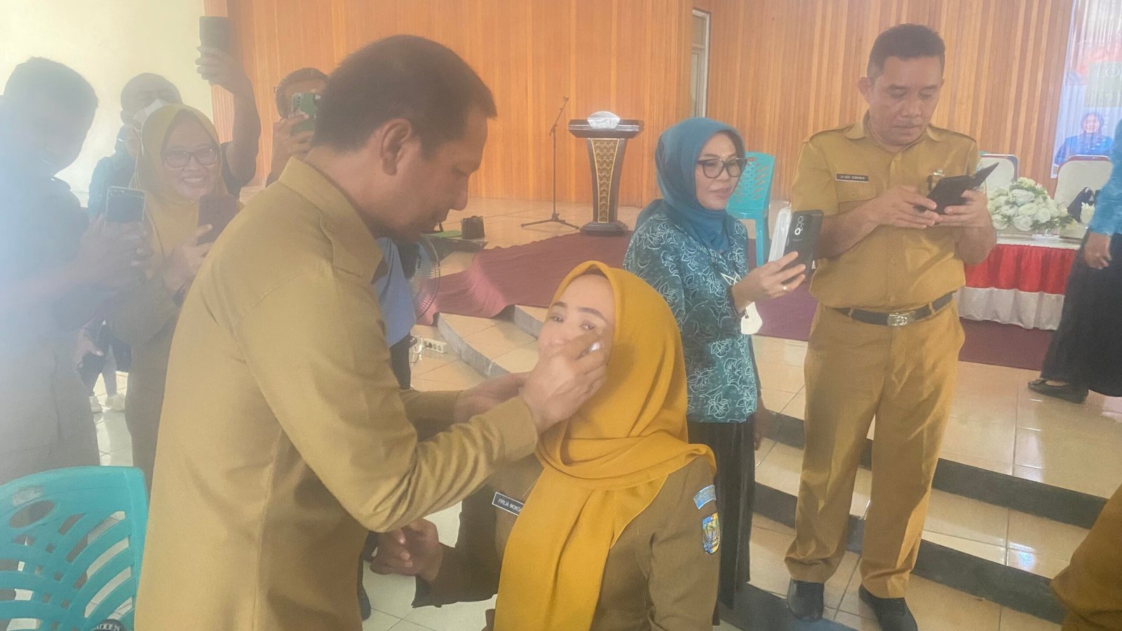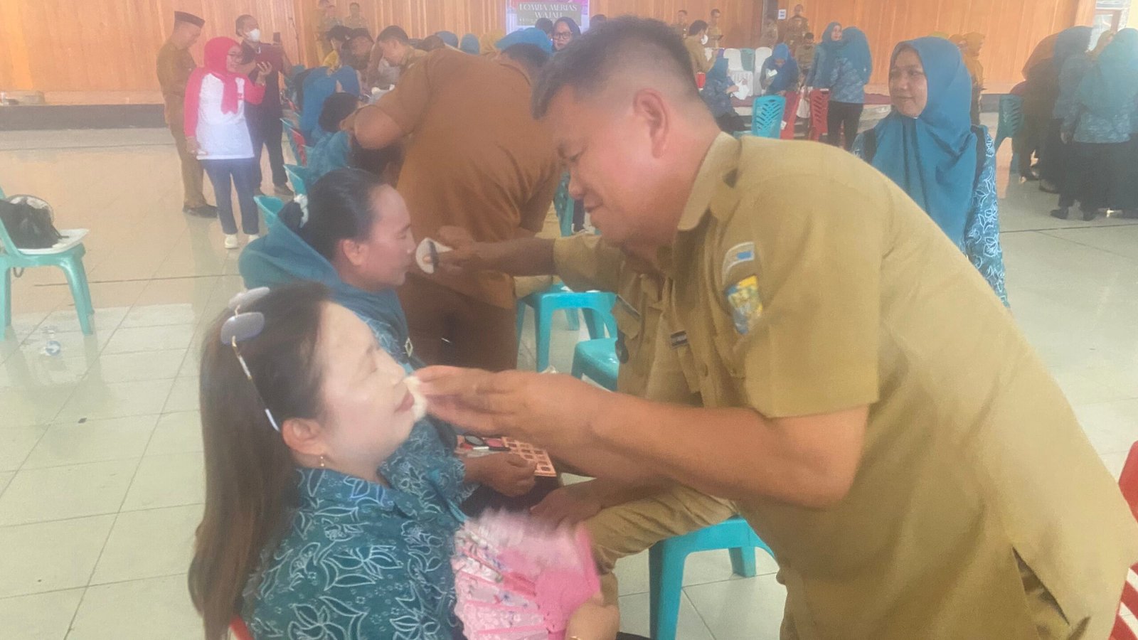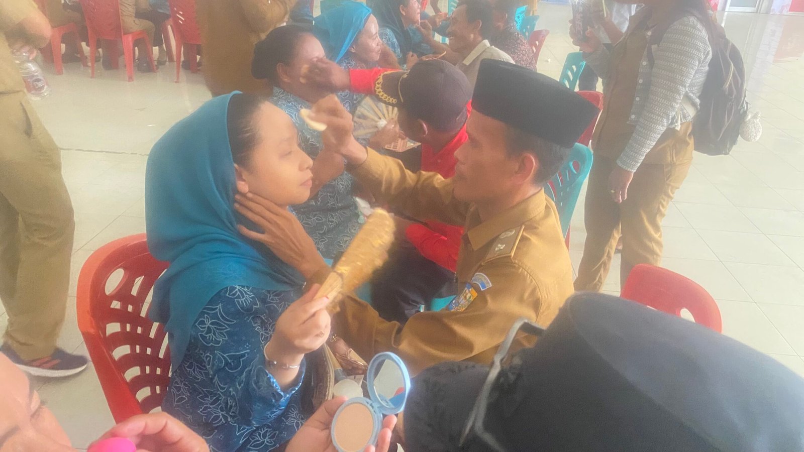Guna ikut meramaikan acara ini, Bupati dan Sekda turut merias para isterinya.