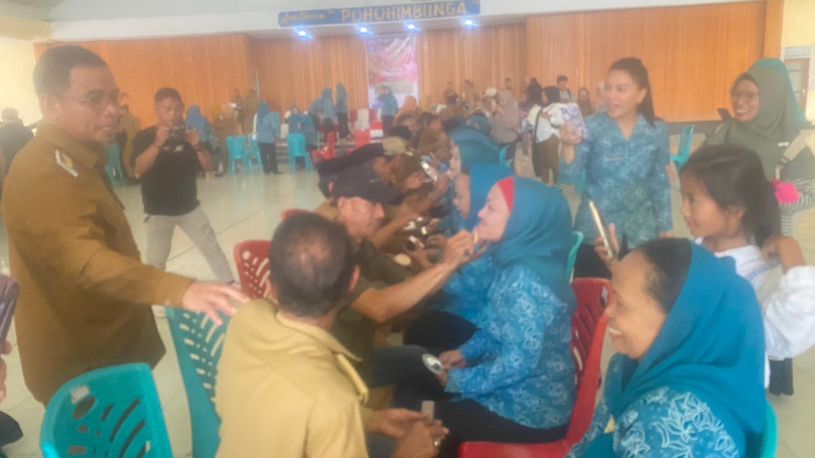 Acara lomba merias wajah isteri para sangadi dalam rangka memperingati HUT Bolmong Utara Ke-18, 23 Mei 2025, dibuka resmi Ibu Ketua Tim Penggerak PKK Kabupaten Bolmong Utara Ny. Ening Lasena Adam dihadapan 107 sangadi dan 1 lurah bersama para isterinya.