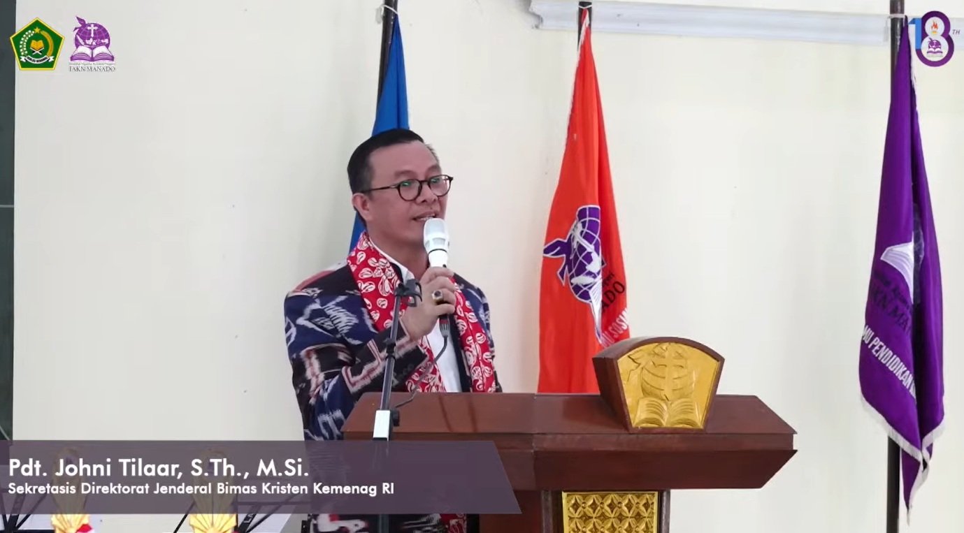 MANADO – Puncak perayaan dies natalis ke 18 Institut Agama Kristen Negeri (IAKN) Manado, berlangsung penuh syukur di Aula IAKN, Rabu (23/07/2025), dihadiri Sekretaris Direktorat Jenderal Bimbingan Masyarakat Kristen Pdt. Johni Tilaar, S.Th., M.Si, para wakil rektor, dekan, direktur pasca sarjana, dan semua civitas akademika IAKN.