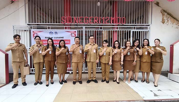 Foto – Asisten I Pemkot Manado Julises Oehlers SH memantau di SD Negeri 12 Manado