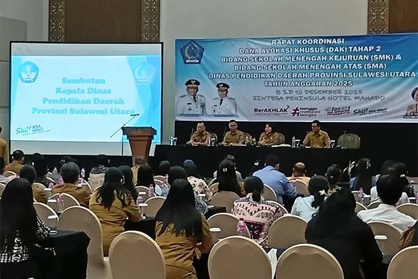“Kita tentunya berterimah kasih kepada Presiden Prabowo lewat Kemendikdasmen atas bantuan dana dan peralatan untuk sektor pendikan bersama Gubernur Sulut” kata Kadis Dikda Sulut Dr Femmy Suluh M.Si saat membuka Rapat Koordinasi (Rakor) Dana Alokasi Kusus (DAK) SMA dan SMK Tahun 2025 di Hotel Paninsula Manado Senin (8/12) malam.