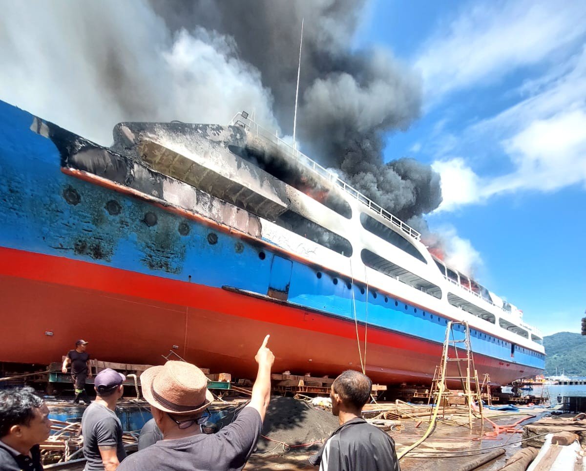 Kapal penumpang Uki Raya 23, yang tengah dalam proses perbaikan, dilanda kebakaran sekitar pukul 11.30 WITA.