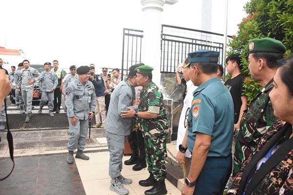 Manado,Sulutnews.com – Kapoksahli Pangdam XIII/Merdeka Brigjen TNI Wakhyono bersama unsur Forum Koordinasi Pimpinan Daerah (Forkopimda) Provinsi Sulawesi Utara menyambut kedatangan Kepala Badan Keamanan Laut (Bakamla) RI, Laksdya TNI Dr. Irvansyah, S.H., M.Tr. Opsla., di Bandar Udara Sam Ratulangi Manado, Kamis (28/8/2025).