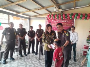 Dalam kegiatan ini Kepala Kejari Minsel, Albertus Roni Santoso, S.H., M.H., menyerahkan bingkisan dan bantuan untuk anak-anak serta pengurus panti asuhan.