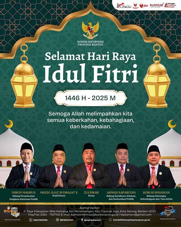 Selamat Hari Raya Idul Fitri 1446 H/2025 M dari Komisi Informasi Provinsi Banten. Semoga hari raya ini membawa kebahagiaan dan keberkahan bagi kita semua.(*/Abdul)