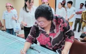 Ketua Komisi IV DPRD Sulut Vonny Paat menandatangani spanduk dukungan
