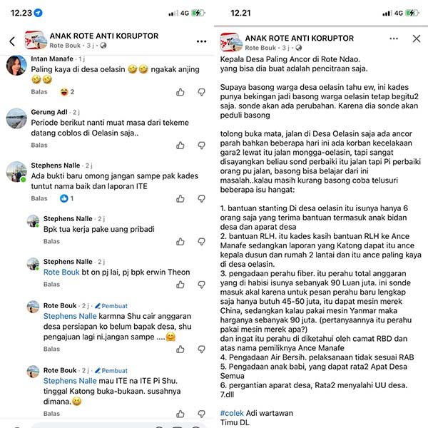 Hingga berita ini diturunkan, belum ada tanggapan resmi dari pihak Kepala Desa maupun Pemerintah Desa terkait tudingan yang dilayangkan oleh akun “ANAK ROTE ANTI KORUPTOR” tersebut.