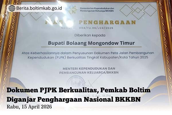 Pemkab Boltim sukses meraih penghargaan tersebut, dari Badan Kependudukan dan Keluarga Berencana Nasional (BKKBN), atas keberhasilan dalam penyusunan Dokumen Peta Jalan Pembangunan Kependudukan (PJPK) berkualitas tingkat Kabupaten/kota tahun 2025.