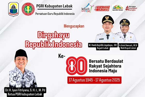 Dengan mengucapkan Dirgahayu RI ke-80 Tahun, Dr. H. Iyan Fitriyana, S. H. I.M. Pd sebagai Ketua PGRI Lebak mengajak seluruh masyarakat untuk terus merawat semangat kemerdekaan dan berkontribusi dalam memajukan daerah dan bangsa.(Abdul)