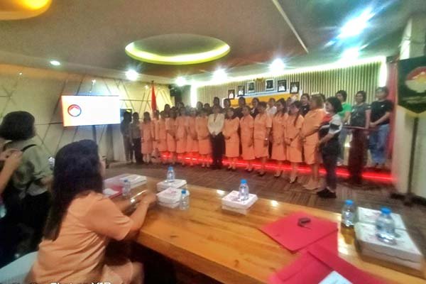 Manado,Sulutnews.com – Ketua Tim Penggerak (TP) Pemberdayaan Kesejahteraan Keluarga (PKK) Pemerintah Kota (Pemkot) Manado Ny Irene Golda Angouw-Pinontoan menghadiri kegiatan Sosialisasi Anggaran Dasar dan Anggaran Rumah Tangga (AD/ART) yang diselenggarakan oleh Dewan Pengurus Wilayah (DPW) Dharma Wanita Persatuan (DWP) Kota Manado diketuai oleh Ny. Syenny Dandel-Tamuntuan.